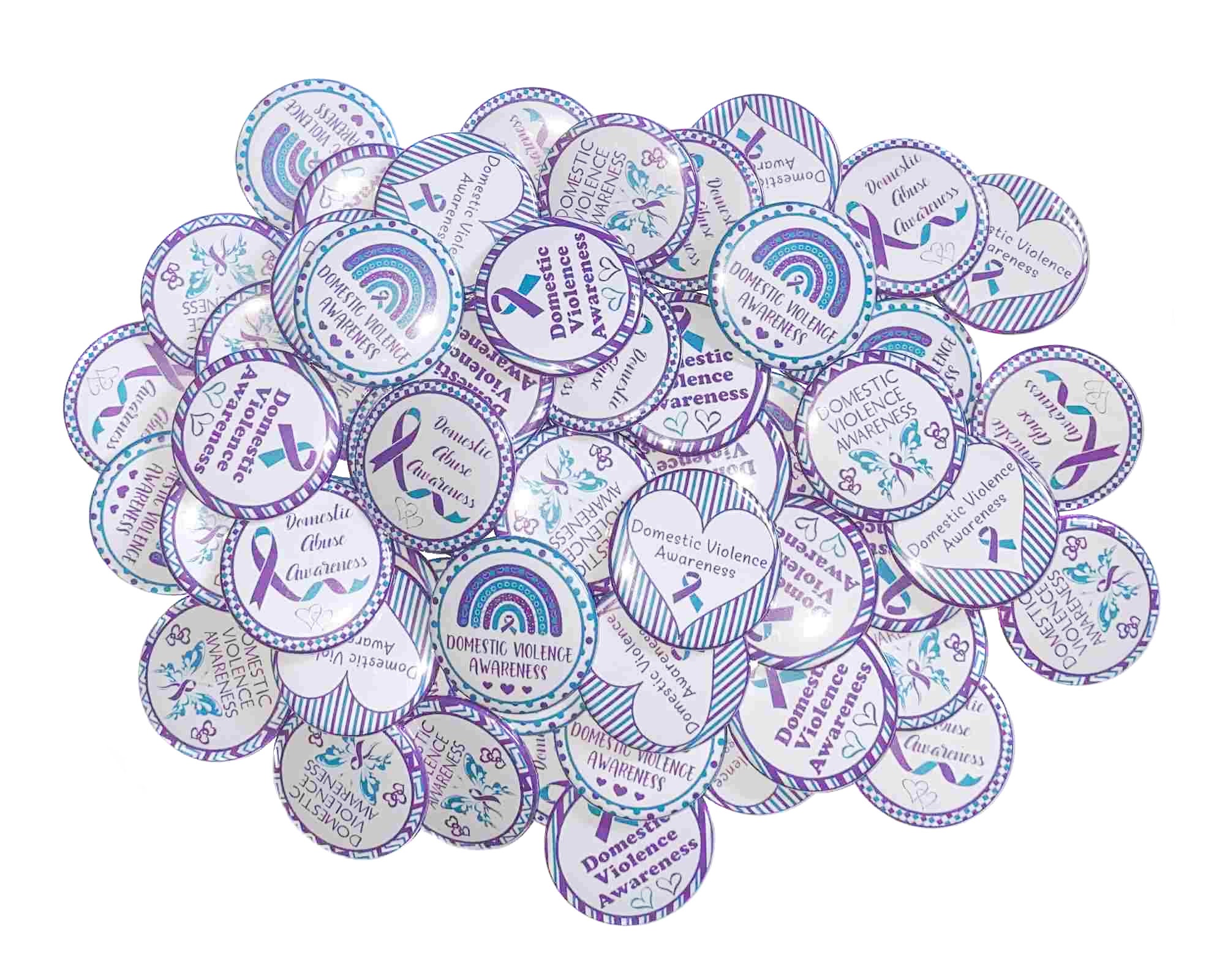 Domestic Violence, 1", 1.25", 1.5", 2.25", Button, Purple Teal Ribbon, Violence Ribbon, Domestic Abuse, Flatback, Pinback, CA057
