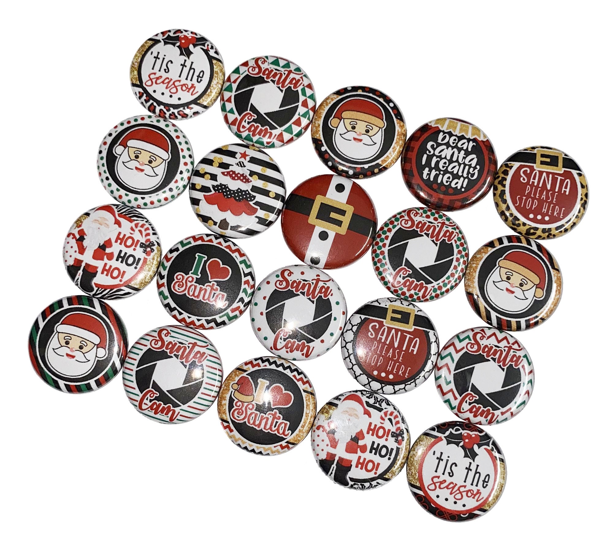 Christmas, Santa, 1", 1.25", 1.5", Button, Xmas, Santa Party Favor, Santa Gift, Santa Flatback, Santa Pinback, Santa Badge, X047