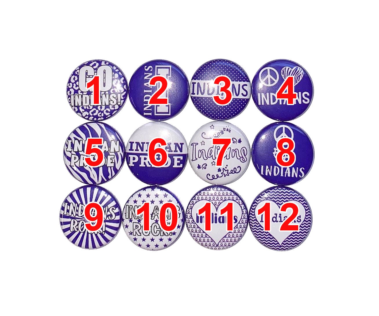 These buttons are available in 4 sizes: 1", 1.25", 1.5", and 2.25". You must select the button size you would like along with your quantity in the drop down box. This listing is for a random assortment of buttons as pictured. If you would like to choose your own buttons out of this set, please send me a message to request a custom order.