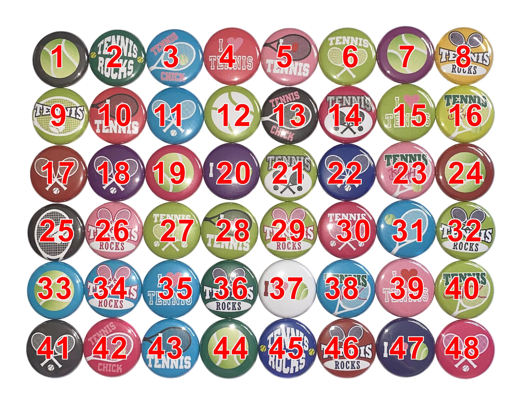 Tennis, 1", 1.25", Button, Tennis Theme, Tennis Decor, Party Favor, Girl's Tennis, Women's Tennis, Flatback, Pinback, Pin, Badge, SE005
