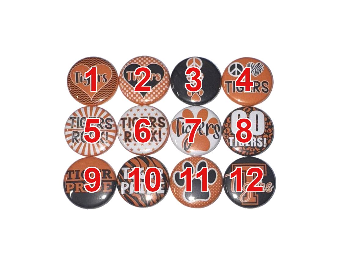 These buttons are available in 4 sizes: 1", 125", 1.5", and 2.25". You must select the button size you would like along with your quantity in the drop down box. Buttons have a magnet attached to the back. This listing is for a random assortment of buttons as pictured. If you would like to choose your own buttons out of this set, please send me a message to request a custom order.