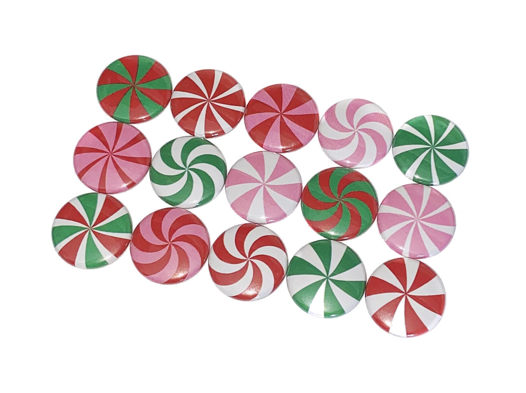 Peppermints, 1", 1.25", Button, Green Peppermint, Red Peppermint, Pink Peppermint, Christmas, Party Favor, Candy, Flatback, Pinback, FD020