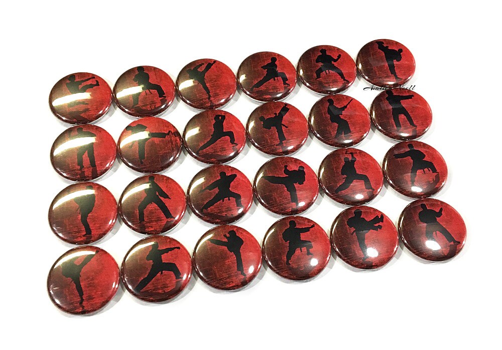 Martial Arts, 1", 1.25", 1.5", 2.25", Button, Martial Arts Decor, Fight, Karate, Red, Black, Karate Gift, Flatback, Pinback, Pin, KM003