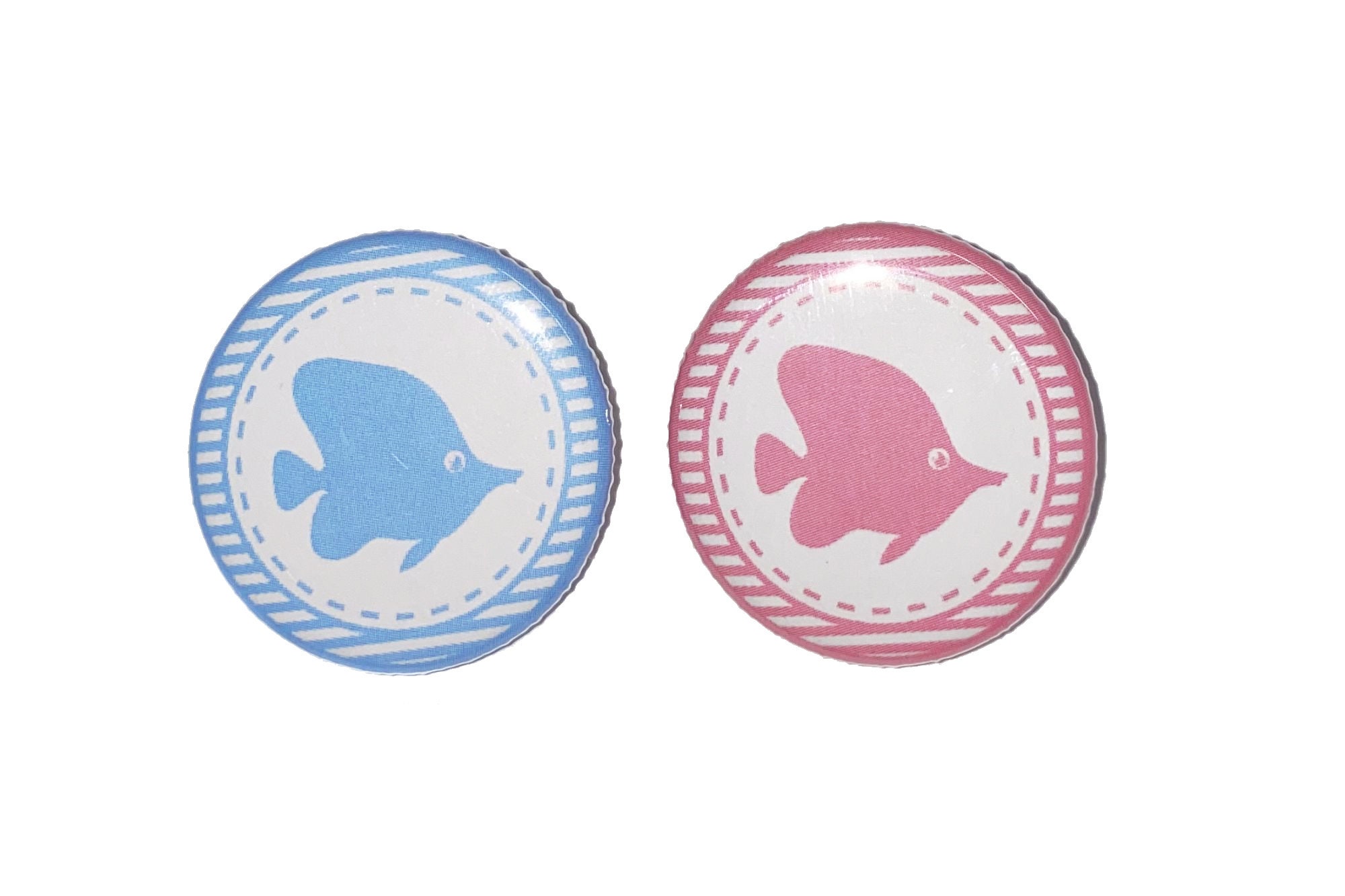 You will receive a half boy (blue fish) and a half girl (pink fish) set of gender reveal buttons with the quantity you select unless selecting the option for 10 boy (blue) buttons or 10 girl (pink) buttons.