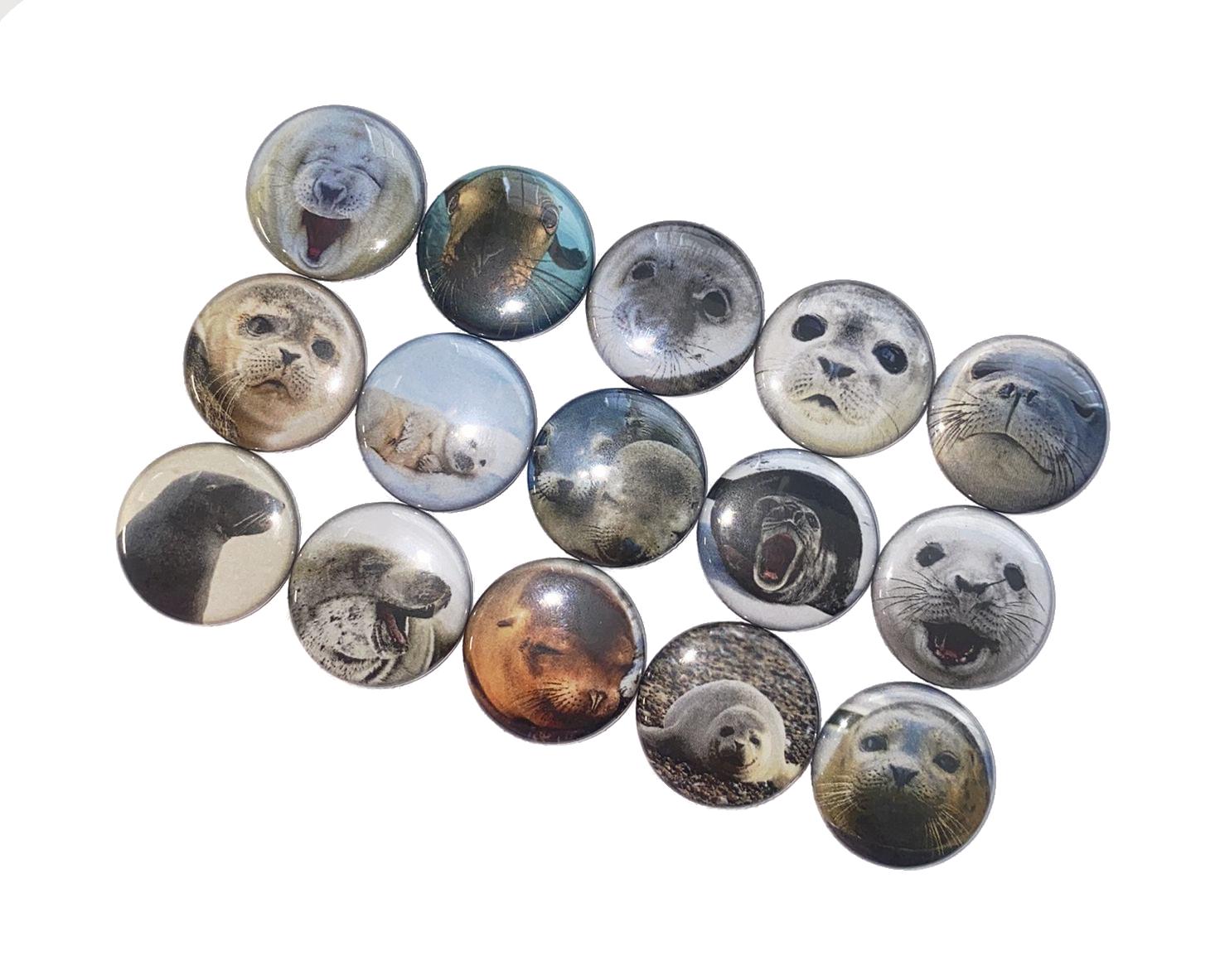 Seals, 1", 1.25", 1.5", 2.25", Button, Seal Theme, Seal Decor, Seal Birthday, Sea Life, Marine Mammal, Ocean, Flatback, Pinback, Pin, AQ004