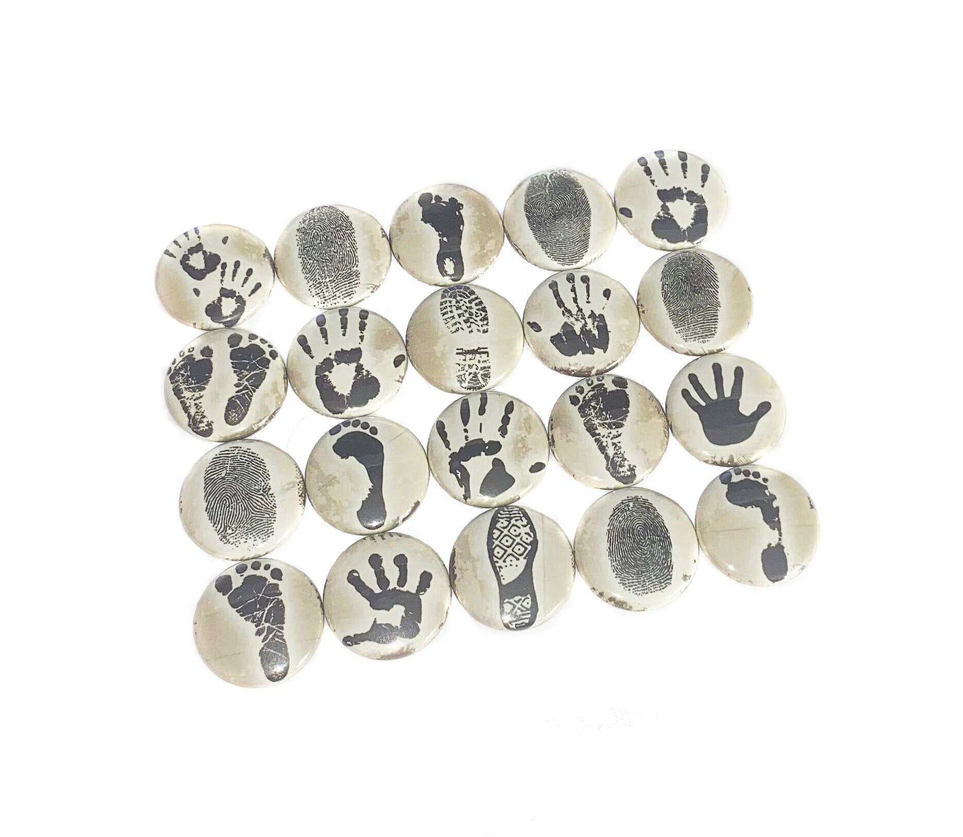 Prints, 1", 1.25", 1.5", 2.25", Button, Finger Print, Hand Print, Foot Print, Shoe Print, Forensics, Crime Theme, Flatback, Pinback, SY004