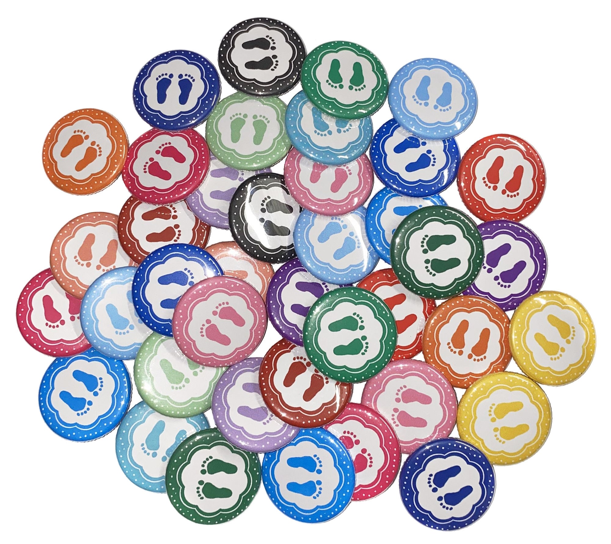 These buttons are available in 4 sizes: 1", 1.25", 1.5", and 2.25". You must select the button size you would like along with your quantity in the drop down box. This listing is for a random assortment of buttons as pictured. If you would like to choose your own buttons out of this set, please send me a message to request a custom order.